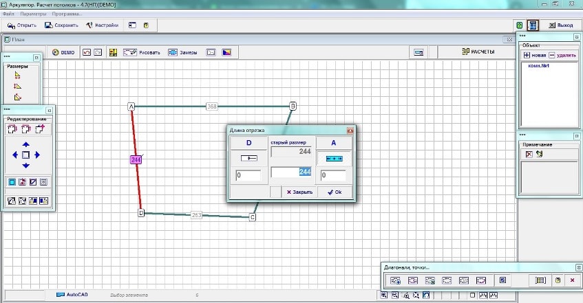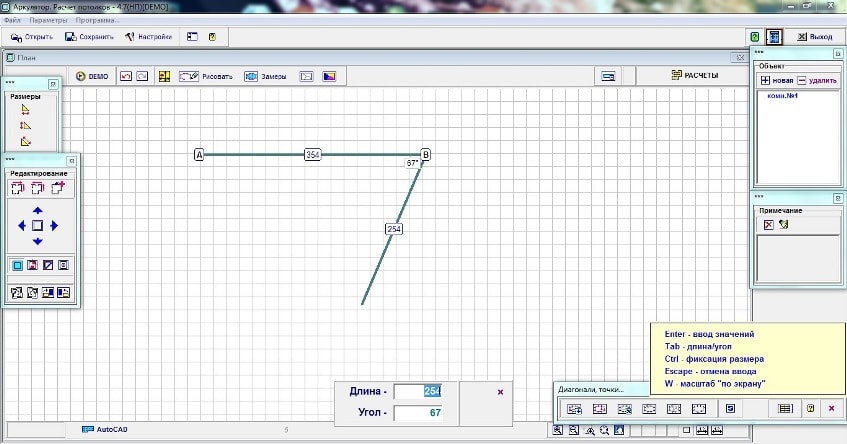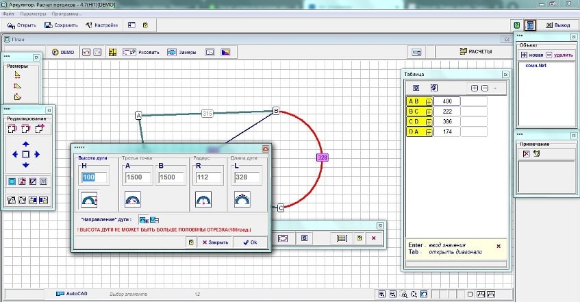 Работа в программе аркулятор расчет потолков 4.7: