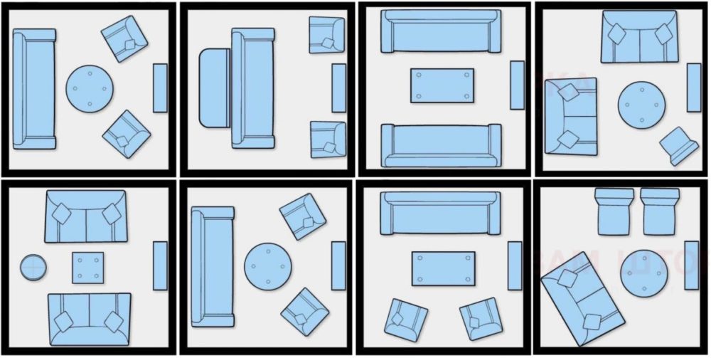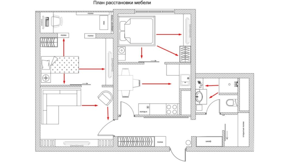 При выполнении рекомендаций по расстановке мебели необходимо учитывать назначение комнаты, площадь, планировку