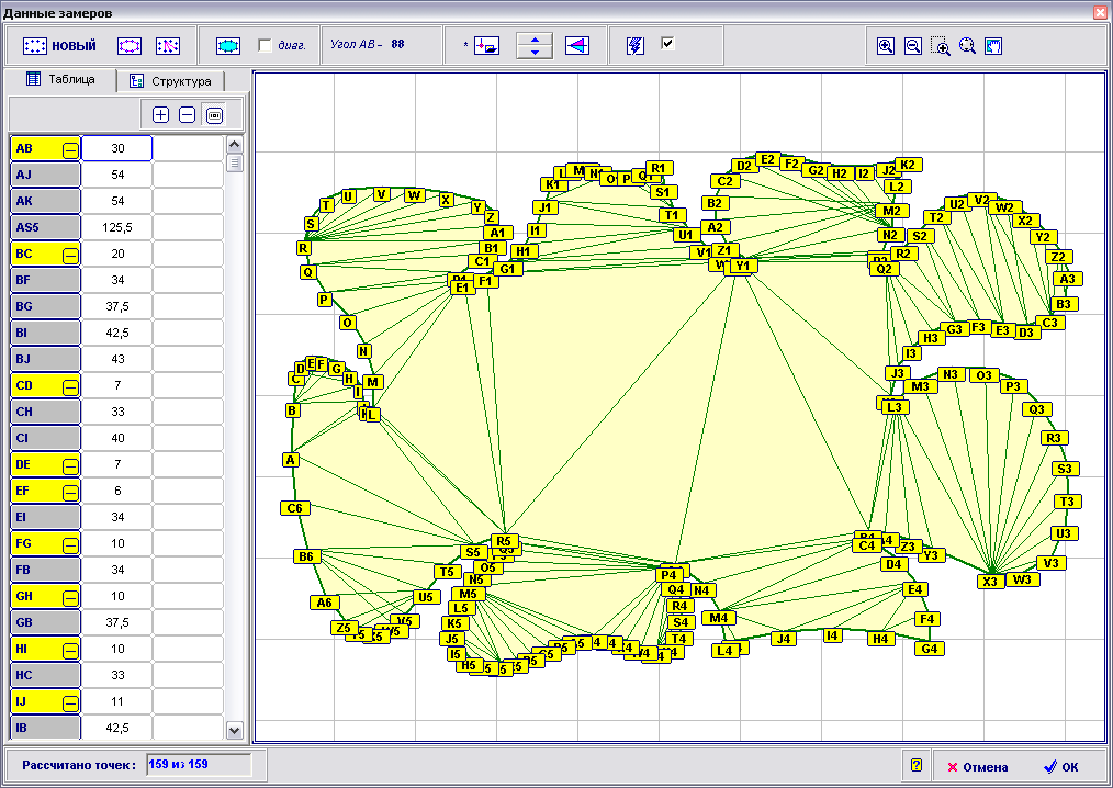 Использование таблицы позволяет уточнять размеры сторон и диагоналей с отображением ввода данных на чертеже.