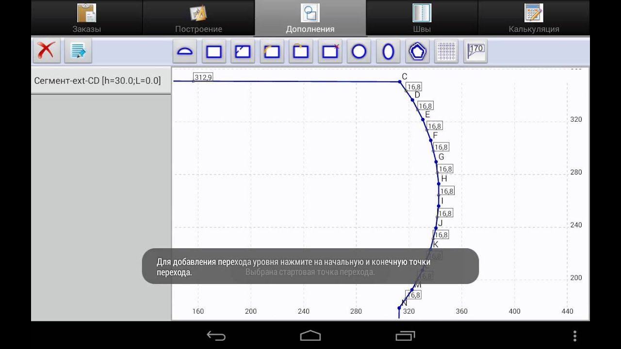 Редактирование контура производиться через контекстное меню. Здесь можно добавлять/удалять точки, делить отрезки, создавать дуги.