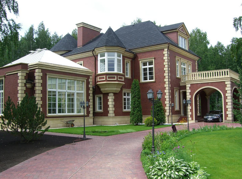 Проект красивого дома с отделкой клинкерным кирпичомИсточник st-deluxe.ru