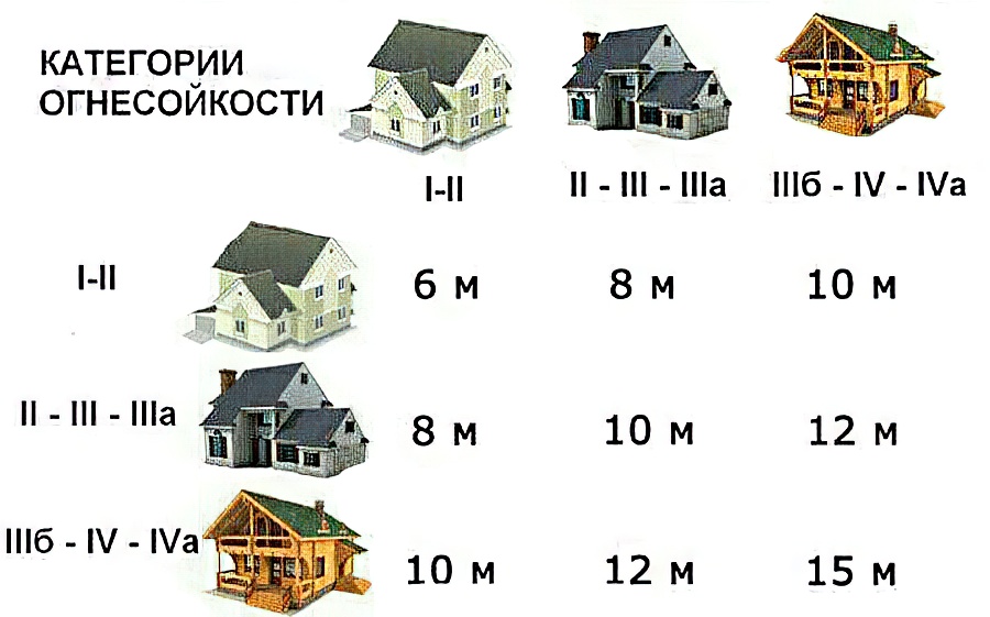 При строительстве должны соблюдаться противопожарные расстояния в зависимости от материала