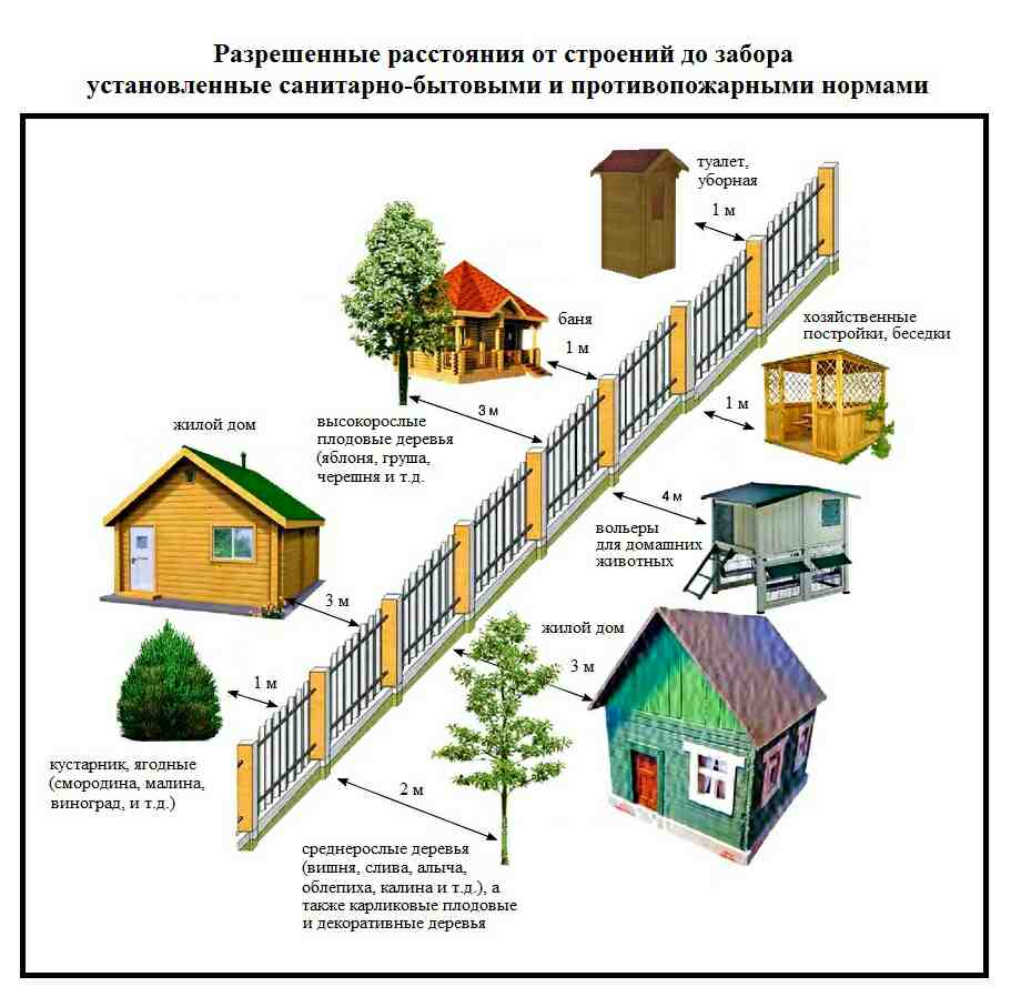 Разрешенные минимальные расстояния до забора при строительстве других объектов на участке