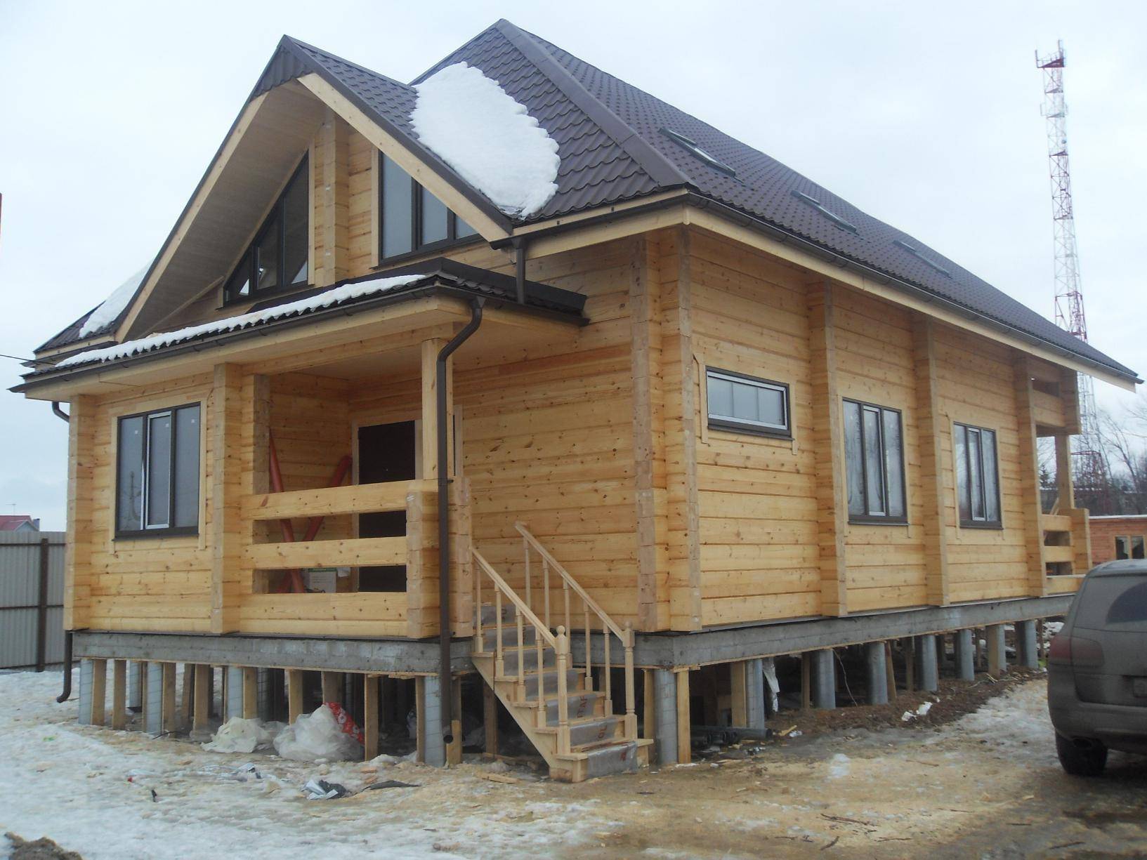 Число опор зависит от конструкции дома, но не может быть менее четырех. Их устанавливают в углах сооружения