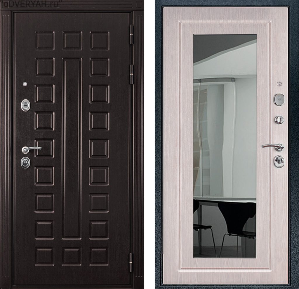 - при желании устанавливается крупногабаритное зеркало, что позволит не просто отвлечь от царапин или сколов на поверхности дверного полотна, но и закрыть их; при этом также произойдет преображение интерьера.