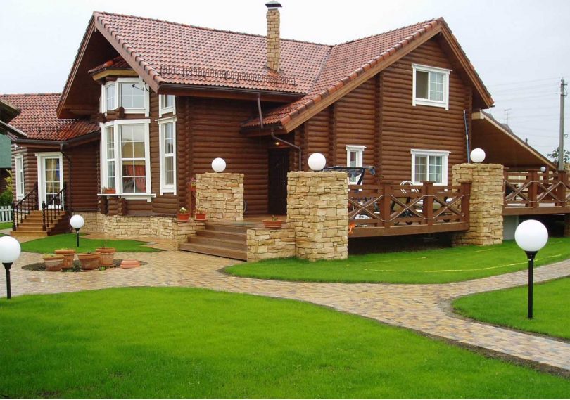 Самой красивой делают основную входную дорожку от калитки к дому. В качестве материала здесь можно использовать тротуарную плитку или натуральный камень. Она может иметь красивую извилистую форму и должна быть достаточно широкой.