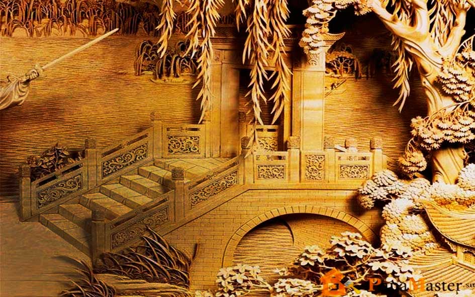 - Китай — резьба Dongyang (произношение: Дон-ян или Дун-ян). Горельефы, круглая скульптура, прорезная резьба;