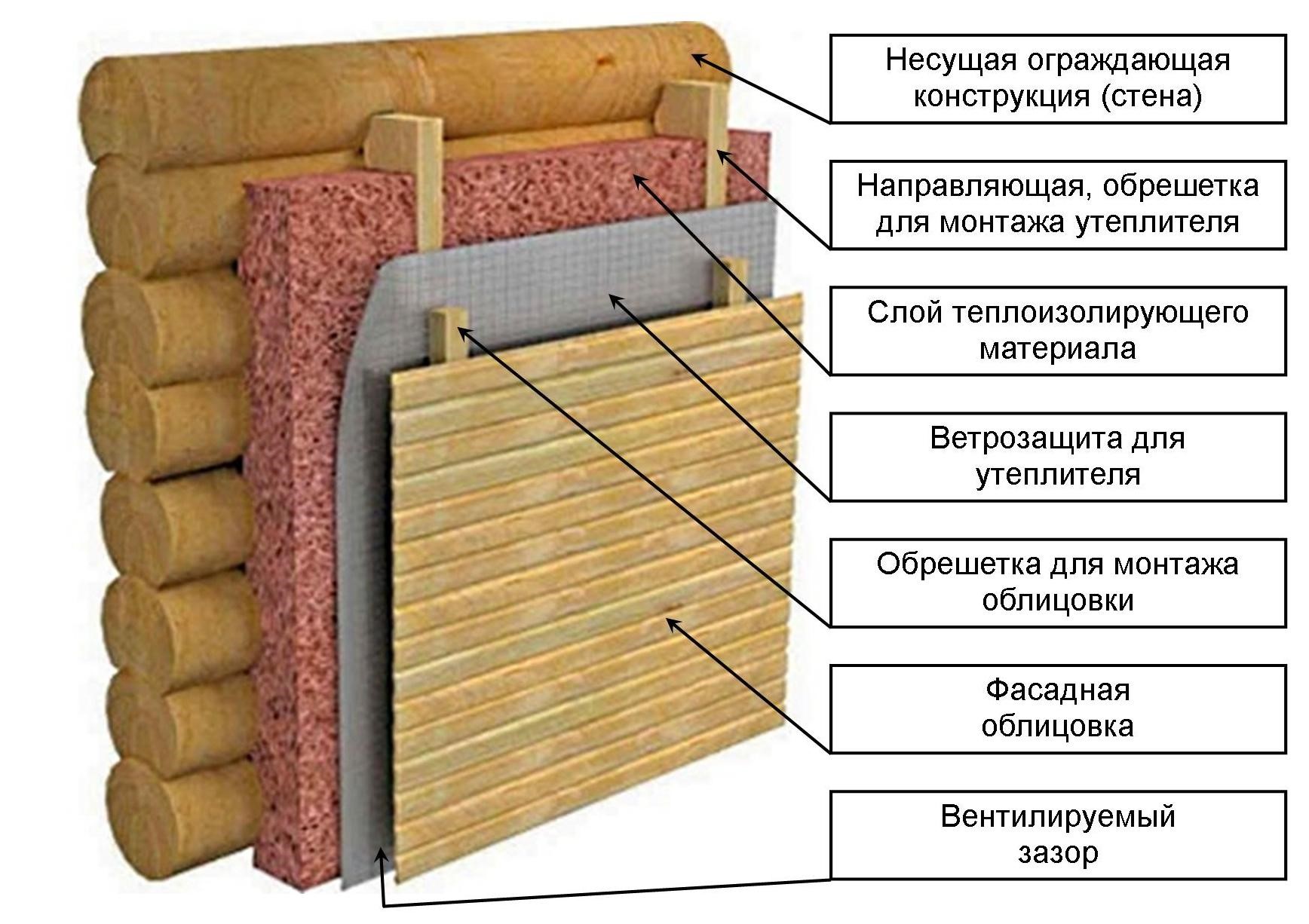 Схема утепления кирпичной бани по принципу вентилируемого фасада