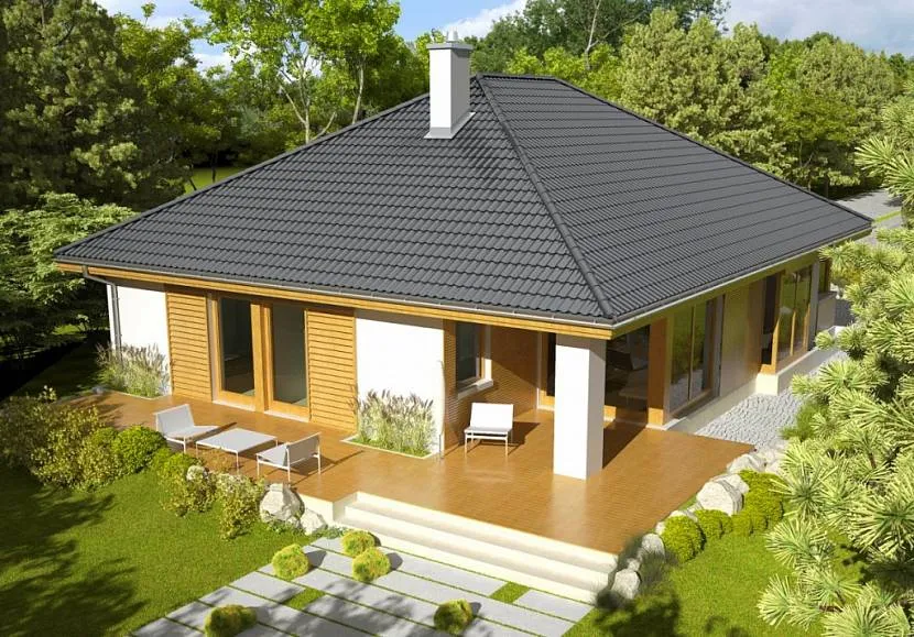 Четырехскатная крыша в одноэтажном домеИсточник hi.decorexpro.com
