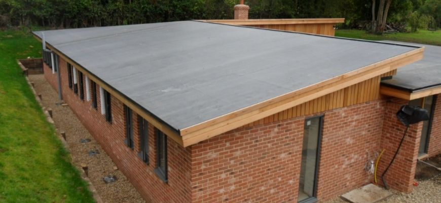 Простота строения с плоской крышей предопределяет несложное проектирование. Использование современных высокотехнологичных материалов позволяет формировать многослойное качественное покрытие.