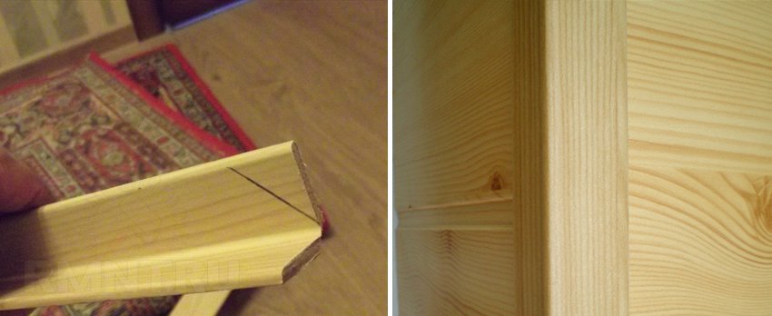 - Чтобы при стыковке вообще не было щели, накладывают планки друг на друга и торцовочной пилой обрезают края сразу у обеих.