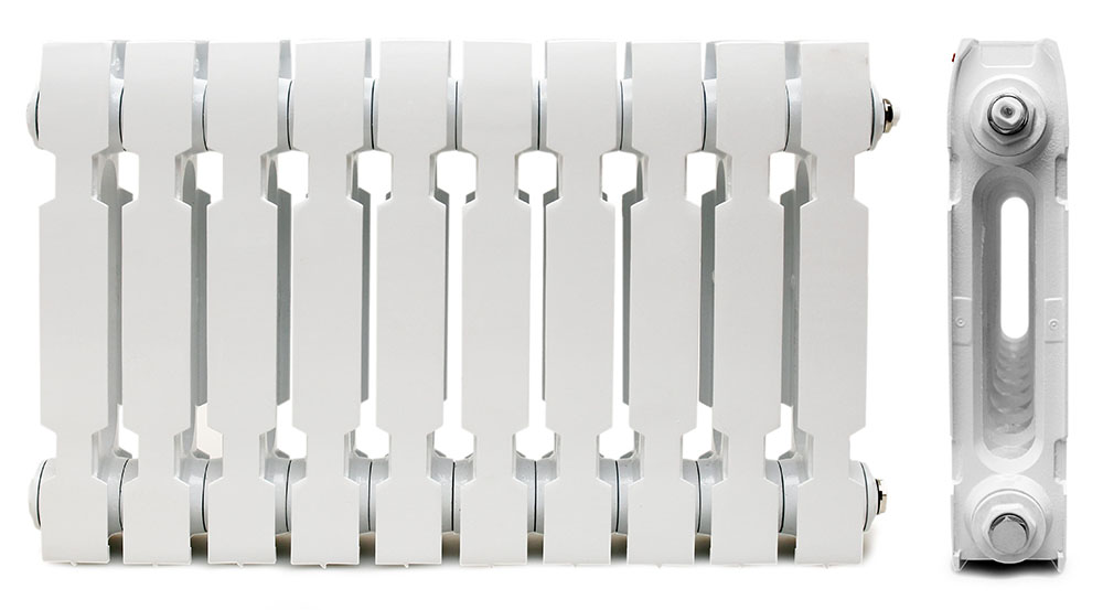 Обогревательные приборы из данного материала применяются в нашей стране очень давно. И даже сегодня они не теряют своей актуальности, ведь современные модели приобрели элегантный внешний вид, а также улучшили свои технические характеристики. Немаловажную роль при этом играют и физические свойства чугуна. Ведь он не подвержен коррозии, а батареи из него отлично переносят гидроудары, поскольку имеют толстые стенки. Но главное преимущество чугуна перед другими материалами это очень хорошая теплоемкость, благодаря которой радиаторы еще долго сохраняют и отдают тепло даже после отключения источника энергии.