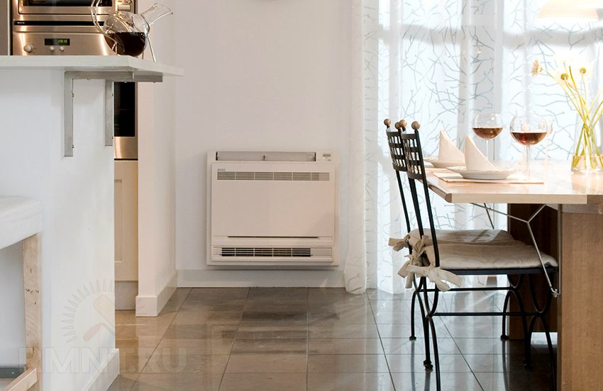 Исходя из критериев экономии места и условий эксплуатации, более подходящими и практичными являются настенные конвекторы. Они занимают не слишком много места и располагаются обычно на стене под окном, при этом создается дополнительная тепловая завеса между холодным окном и комнатой. Однако такие агрегаты должны быть достаточно легкими и не создавать большую нагрузку на стену. Настенные газовые конвекторы ограничены по тепловой мощности до 10 кВт.