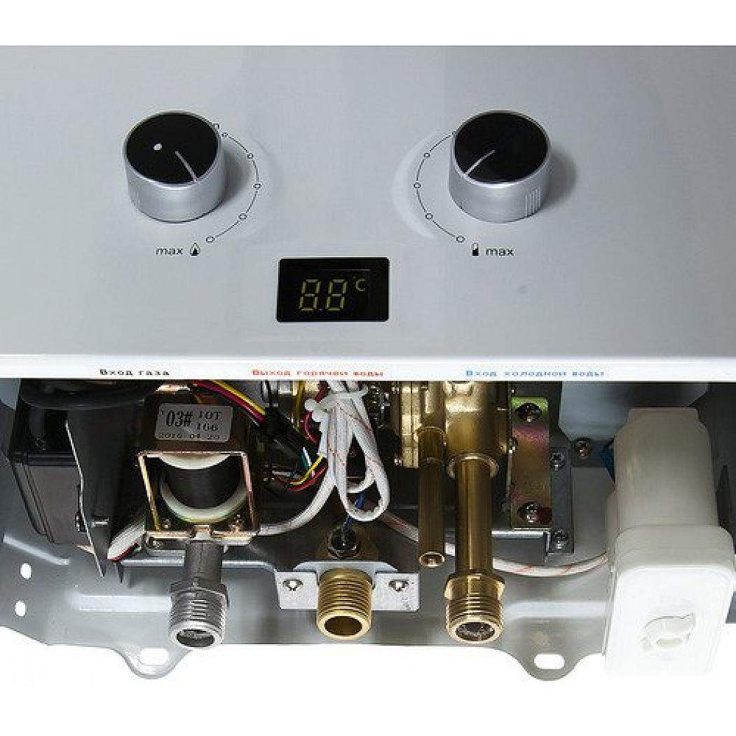 Устройство нагревает до 12л воды в минуту. Ее температура составляет от 30 до 60 градусов. Во время использования аппарат расходует 2,3м3/ч природного газа. Вода подается под давлением от 0,5 до 6 бар.