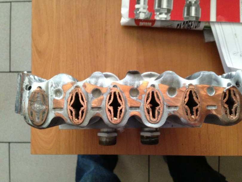 Совет: народные умельцы советуют периодически промывать детали теплообменника в 4%-м растворе уксуса. Делать это лучше после снятия теплообменника, и обязательно нужно прополоскать детали чистой водой.
