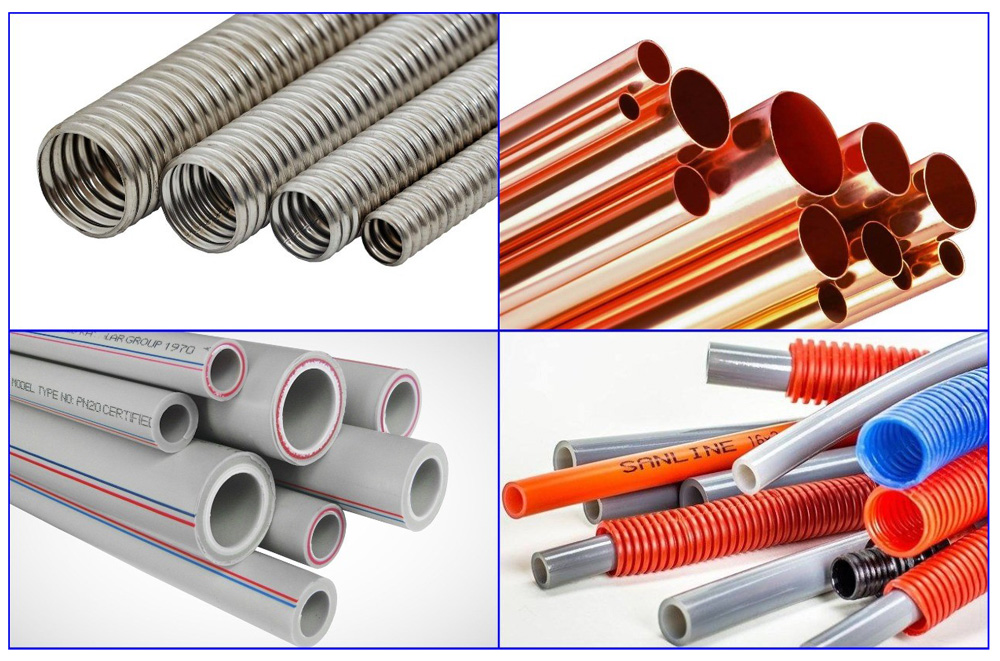 Рис. 3 Материалы труб для отопления: нержавейка, медь, полипропилен, сшитый полиэтилен