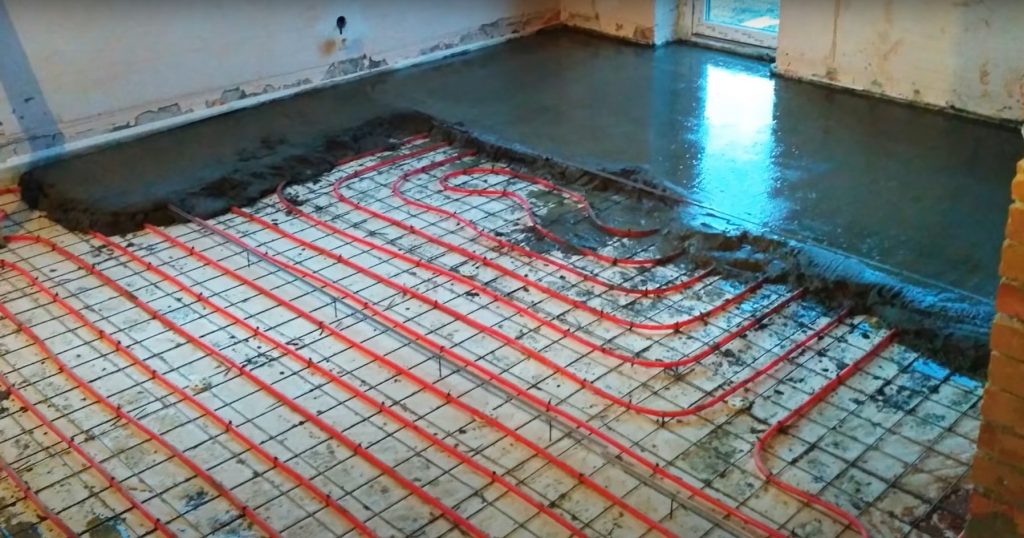 Пирог пола с трубами в стяжке