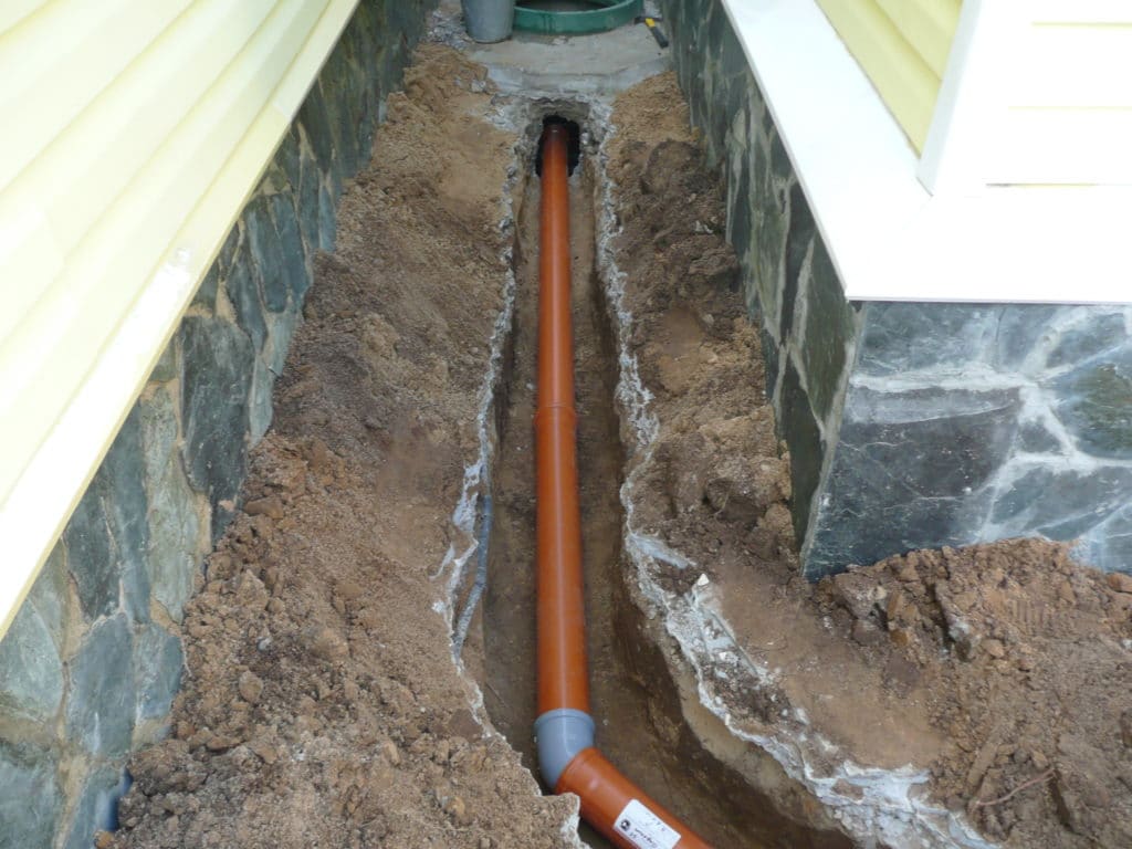Глубина траншеи – точка закладки труб – должна быть ниже точки промерзания грунта для конкретного региона. Глубина промерзания определяется по справочнику. Трубопроводы можно не изолировать, применив защитный материал – стеклоткань и прочие виды материала с подобными характеристиками.