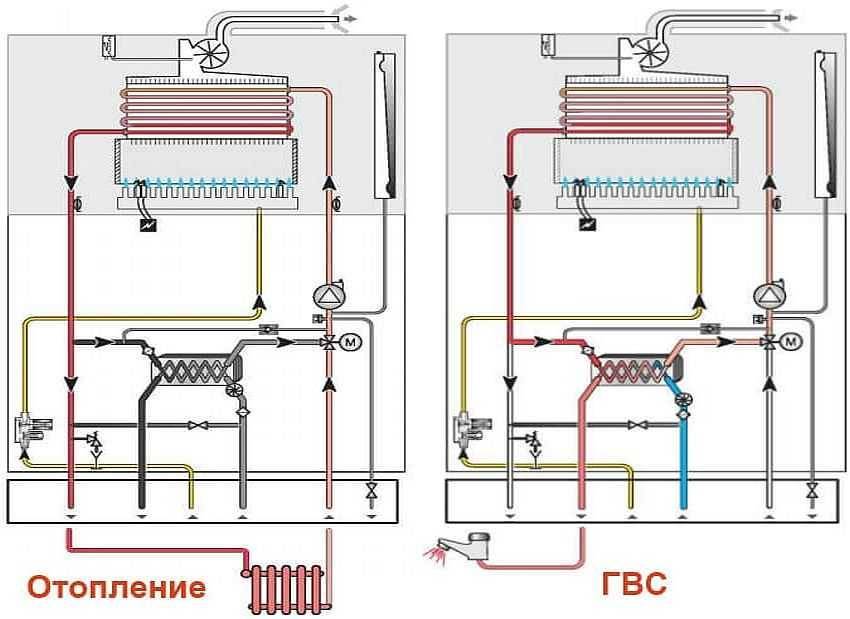 Чтобы наглядно понять принцип работы двухконтурных котлов, рассмотрим как работает каждый контур отдельно: