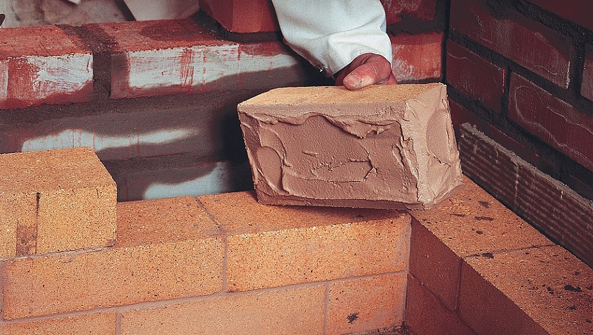 - Следите за толщиной швов, поскольку тут тоже есть определенные требования. Для кладки из шамотного кирпича толщина шва составляет 3 мм, а для красного – 5 мм.