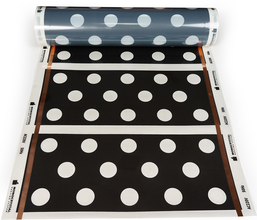 - Пленка саморегулирующаяся. То есть при перестановке мебели в комнате, укладке ковра на пол, не нужно бояться, что она будет перегреваться локально и выходить из строя. Тепло в ней перераспределяется. Если со временем, опять делаются перепланировки, участки которые меньше прогревались, снова начинают хорошо отдавать тепло.