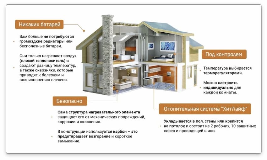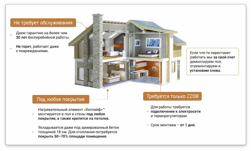 Обобщая перспективы применения пленочных теплых полов Хит Лайф, следует отметить, целый ряд позитивных факторов. Наряду с физическими и химическими аспектами это еще и низкая цена, простота в монтаже и обслуживании. Без преувеличения они являются определяющими при выборе оптимального варианта для отопления жилых помещений и не только.