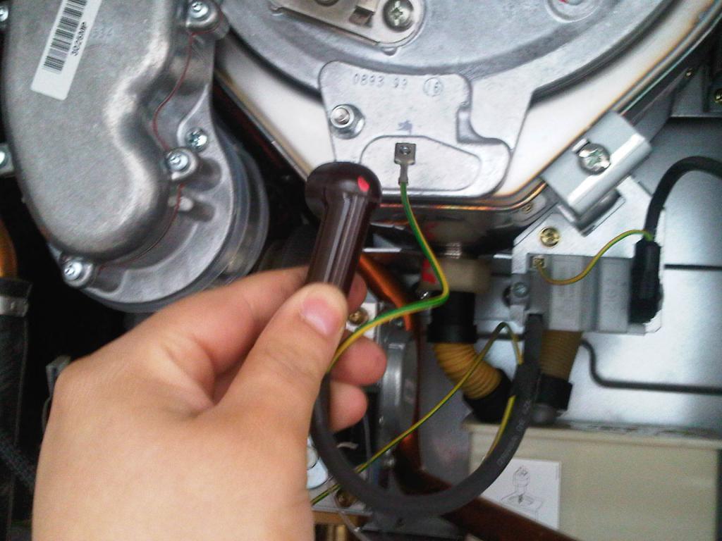 - проблемы с электродом. Эта деталь присутствует в моделях, имеющих автоматический розжиг. Если электрод засорился, он нуждается в прочистке. В противном случае при открытии воды будет раздаваться хлопок;