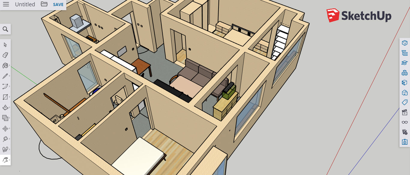 Google SketchUp больше относится к дизайнерской работе. В ней отсутствуют ГОСТы, нет стандартизованных размеров. В программе можно будет вполне реалистично увидеть здание, построенное из строительных материалов, заложенных в плане.