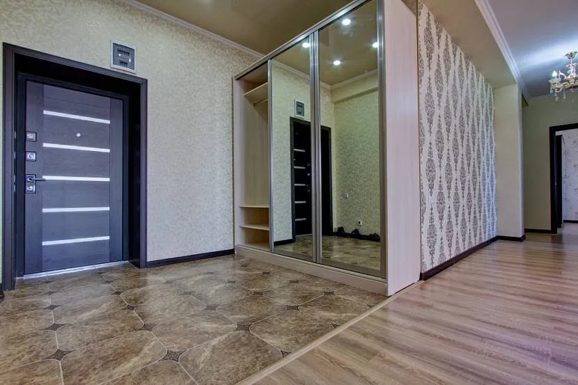 Тем, кто желает придать своей прихожей элемент индивидуальности, стоит остановиться на этом материале. Керамогранитная плитка имеет отличный вид и обладает высокой практичностью из-за своей прочности. В среднем по шкале Фридрика Мооса материал имеет 7 баллов выдержки нагрузкам.