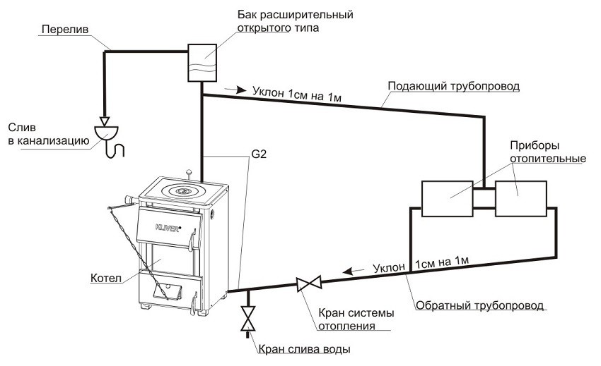 Схема ситемы с естественной циркуляцией