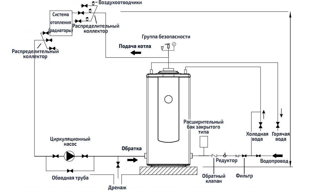 Монтировать нагреватель нужно максимально близко к выходу системы центрального водоснабжения или к отопительному котлу.