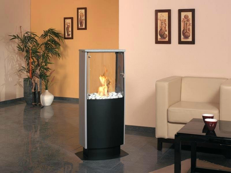 - Биокамином. Данное отопительное оборудование является относительно новым видом. Такой камин в бревенчатом доме работает за счет этанола. Внутри его топочной камеры располагается керамическая горелка и емкость, предназначенная для топлива. Преимущество прибора заключается в отсутствии сажи, золы и других вредных для здоровья веществ. Чтобы полностью обеспечить теплом помещение, такого очага будет недостаточно, поскольку его главная функция декоративная. Биокамины выпускают в настенном, напольном, подвесном и настольном вариантах. Особенность приборов заключается в выделении пара в процессе горения, который увлажняет воздух в помещении. Дымоход делать не обязательно.