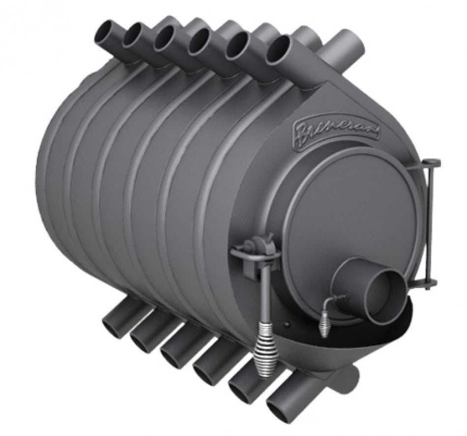 Это, наверное, самая известная и популярная печь такого типа. За основу был взят ее прототип — это печь Бренеран (Булерьян). Затем инженеры ее несколько доработали и, установив в нее теплообменник, сделали возможным использовать ее не только для нагрева окружающего воздуха, но и для нагрева теплоносителя в системе отопления.