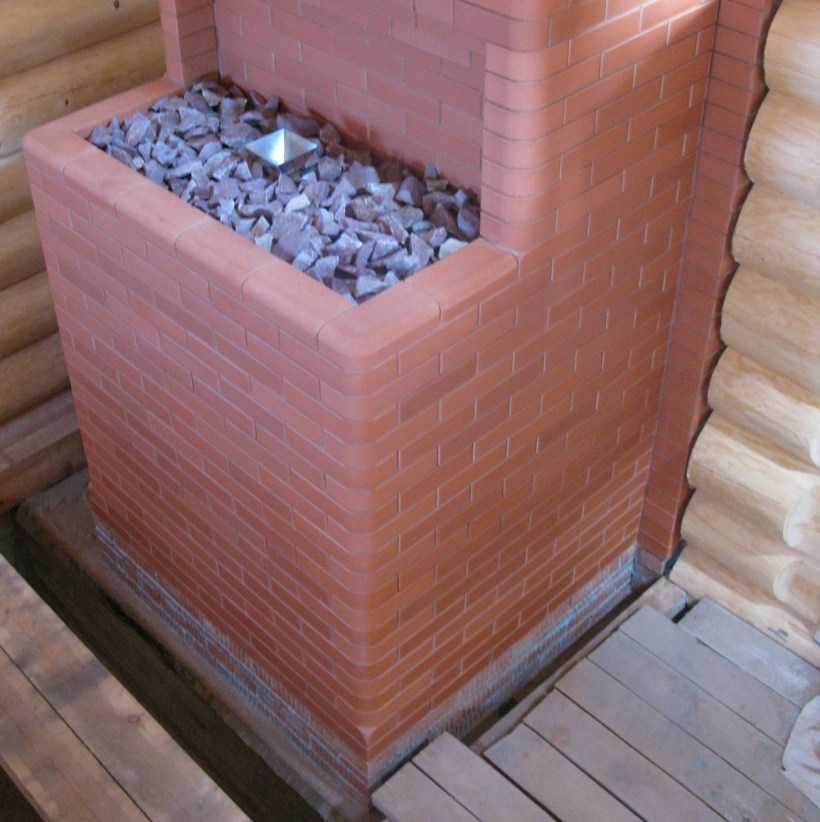 Печь для сауны с кирпичной кладкой, конструктивно похожа на русскую.