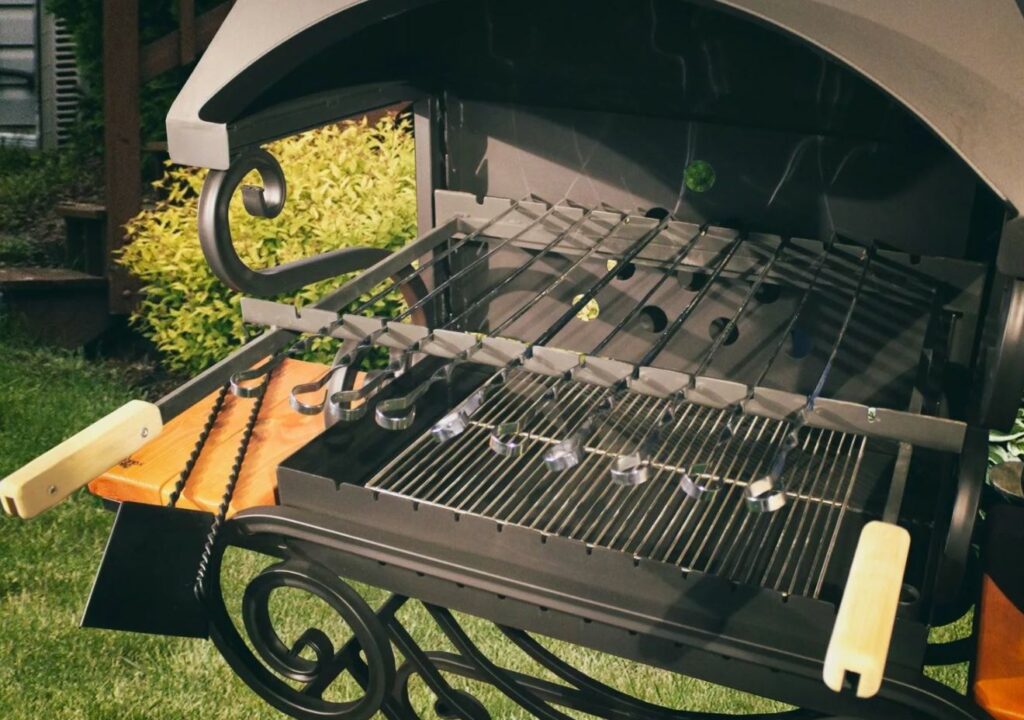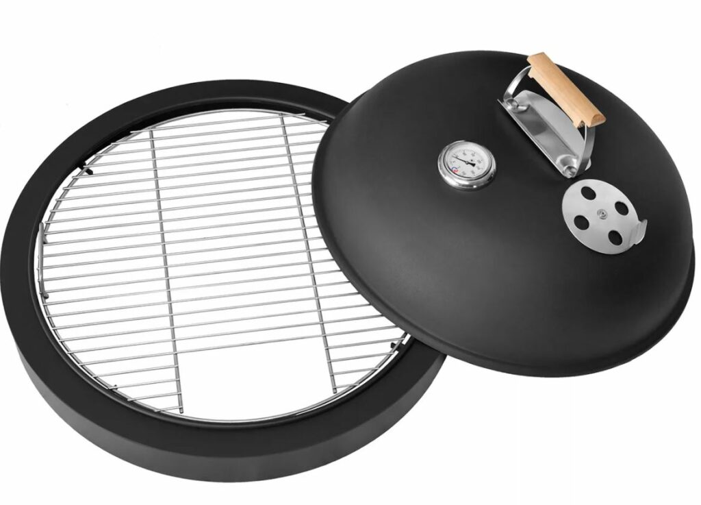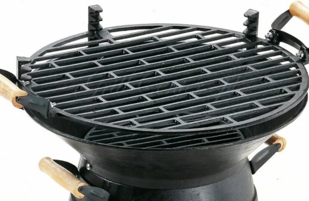 Внутри котлов или чаш размещена решётка из сверхпрочной стали для приготовления блюд. Чаще всего её делают со съёмной центральной частью, реже – цельной. Многие любители барбекю заменяют решётку на камень для пиццы.