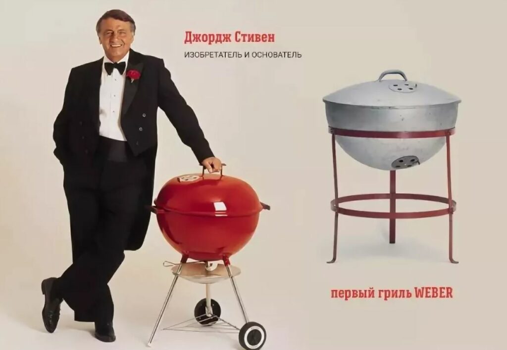 Идея готовить мясо в двух полусферах на ножках с регулируемой внутренней вентиляцией принадлежит американскому бизнесмену Джорджу Стивену. Именно его считают изобретателем гриля.