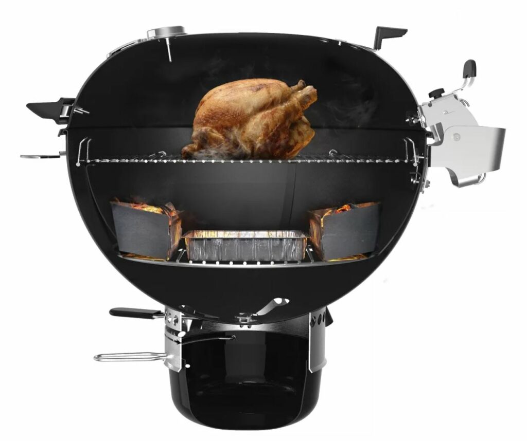 В нижней части котлов или чаш сделаны отверстия. Через них подаётся воздух, который поддерживает горение углей. Все грили с плотной крышкой можно использовать для копчения продуктов.