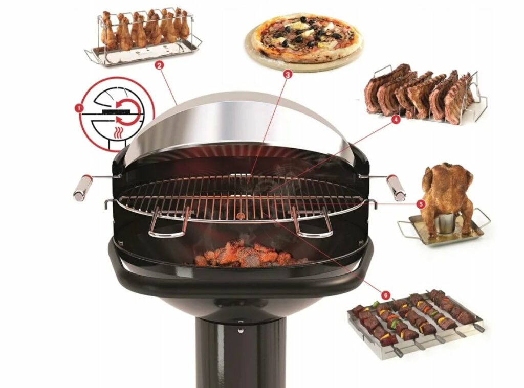 Приготовленная в сферических грилях пища имеет привлекательный аромат дымка и не теряет своей сочности. Готовить в них можно не только мясо и рыбу, но и овощи. Сферические грили часто используют в качестве тандыра.