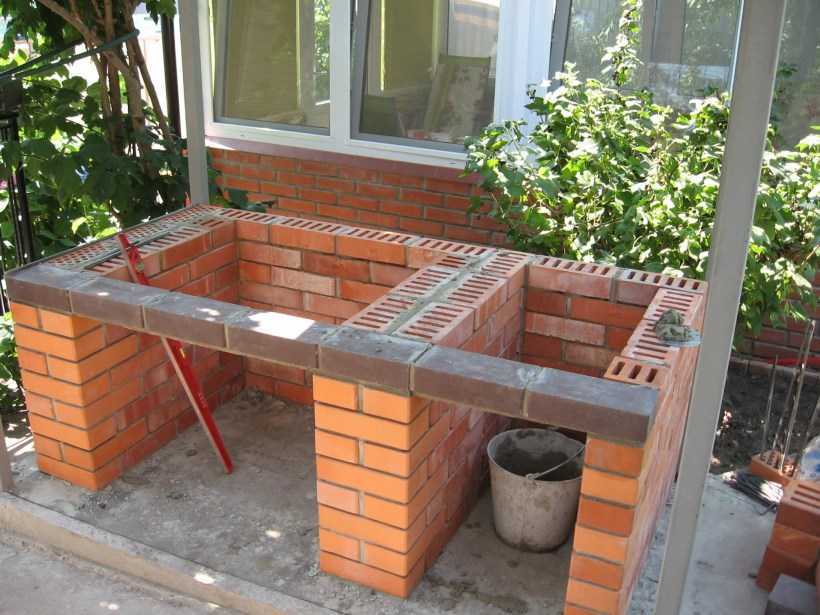 Обычно такие постройки делают на улице, в беседке или на террасе. Если фундамент беседки или террасы выдержит вес печи из кирпича, а это порядка 3 тонн, то можете приступать к стройке сразу. Если же вы собираетесь построить мангал с нуля, то первым делом залейте под него подходящий фундамент: ленточный или плиточный.