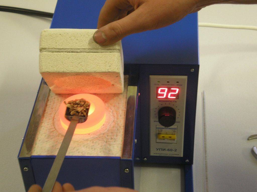Купелирование в муфельной печи основано на том, что свинец и другие неблагородные металлы при высокой температуре легко окисляются кислородом воздуха, тогда как золото и серебро не изменяются.