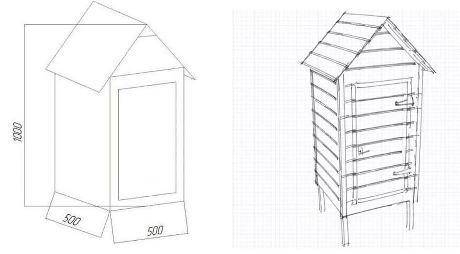 Маленькую коптилку можно брать на охоту, рыбалку или просто на природу. Компактность устройства позволяет легко транспортировать его с места на место. Внутри металлической коробки рекомендуется приварить уголки, на которых можно будет располагать решетку-гриль. При самостоятельном составлении схемы коптильни необходимо учесть все мелкие детали и указать их на рисунке.