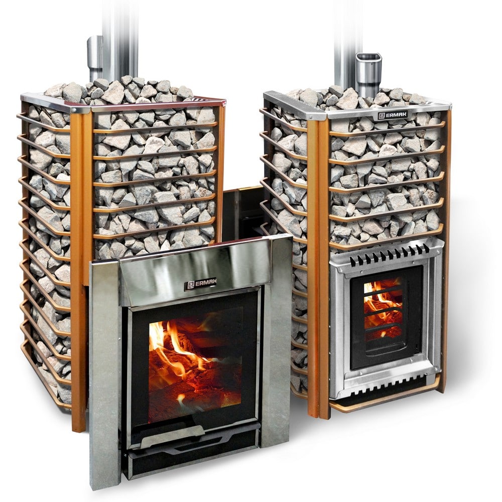 - «Ермак 30» имеет гораздо больший вес и объем, чем предыдущие модели. В данном случае монтаж каменки и теплообменника не создаст сложностей. Уровень влажности при использовании этого агрегата существенно повышается, поэтому модель подходит для установки в открытых парилках. Размер дымохода должен составлять минимум 65 мм. Печь может отапливать помещение площадью 35 м3. При необходимости в модели «Ермак 30» можно изменить тип каменки, а также существует возможность монтажа теплообменника. Модель может нагреть 40 кг камней и имеет бак для воды объемом от 55 до 65 л. Для нее требуется дымоход размером 65 мм. Имеет панорамное стекло, которое создает визуальный эффект камина.