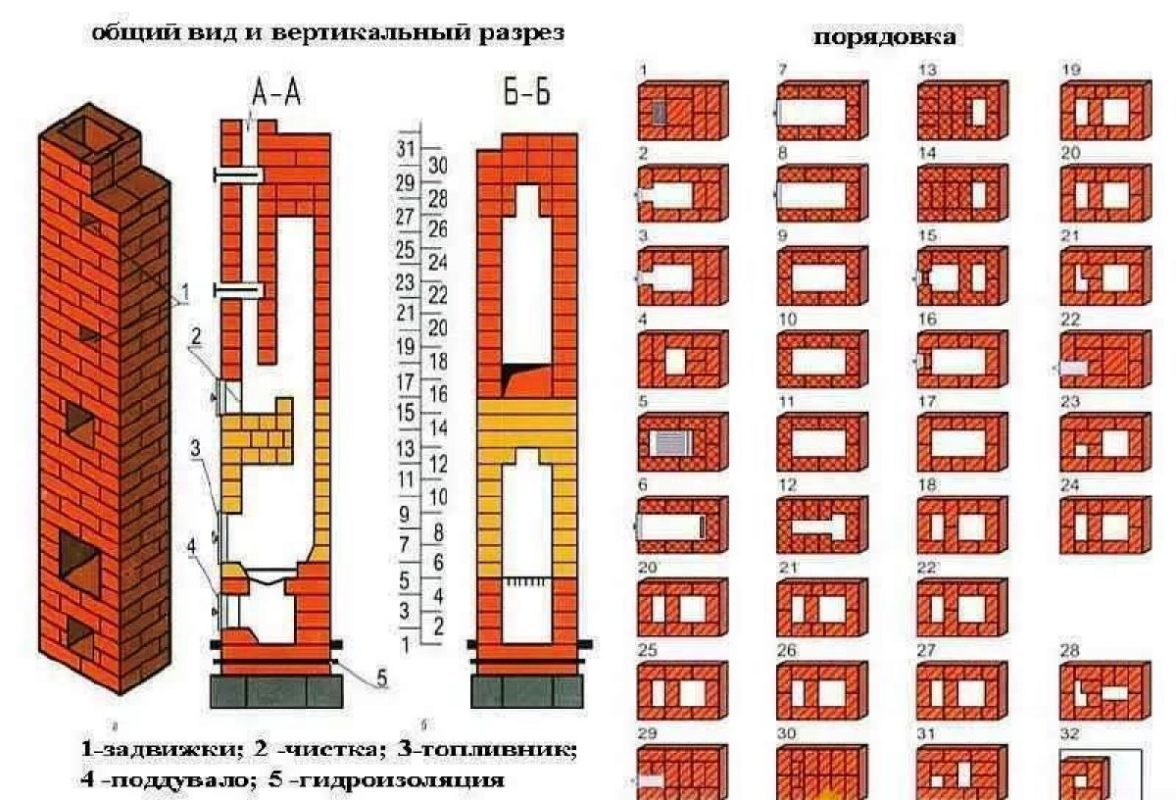 Пошаговая схема изготовления кирпичной печи на дровах и угле: