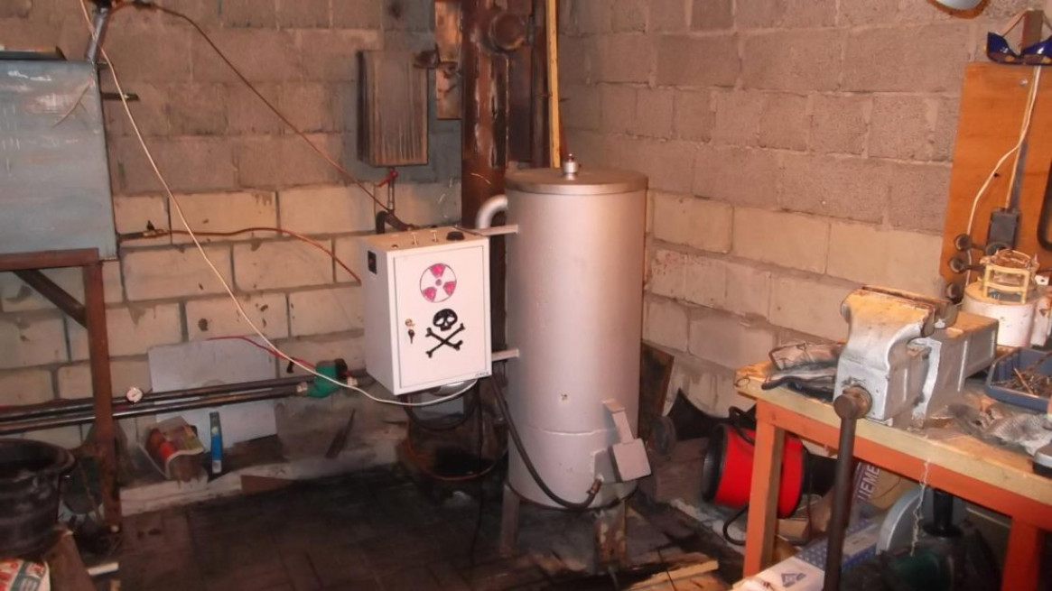 В качестве чаши, где происходит горение, используется нижняя полусфера такого баллона, а топливный бак вынесен за пределы корпуса, дизельное топливо к очагу пламени дозировано поступает по трубке из металла, что исключает самовозгорание.