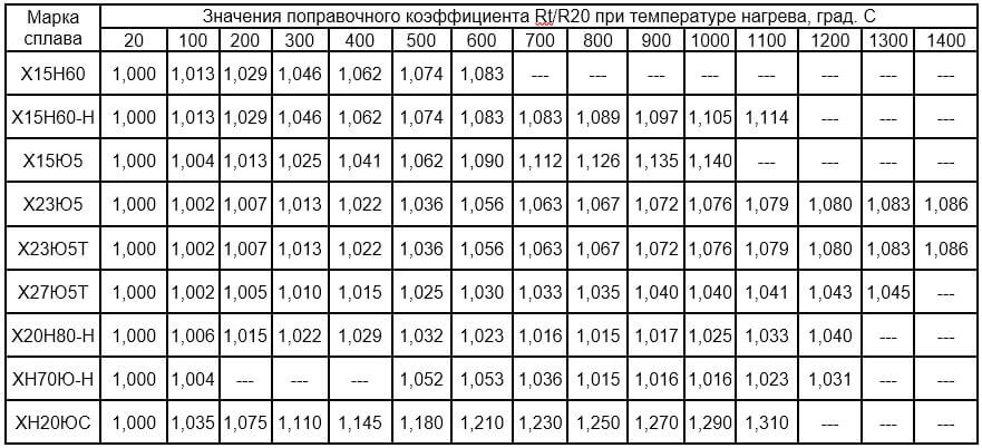 Чтобы рационализировать эту работу при использовании нихромовой спирали на напряжение 220 В, предлагаю воспользоваться данными приведенными в таблице, из расчета, что удельное сопротивление нихрома = (Ом · мм2 / м) C.