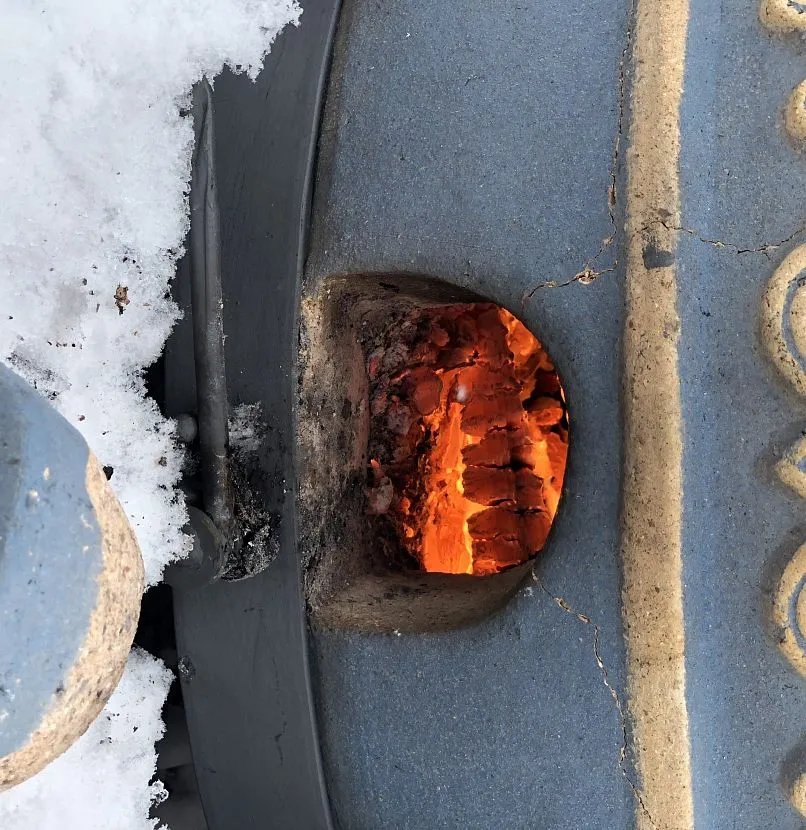 - После их загрузки остаётся закрыть поддувало, а потом накрыть печку крышками.