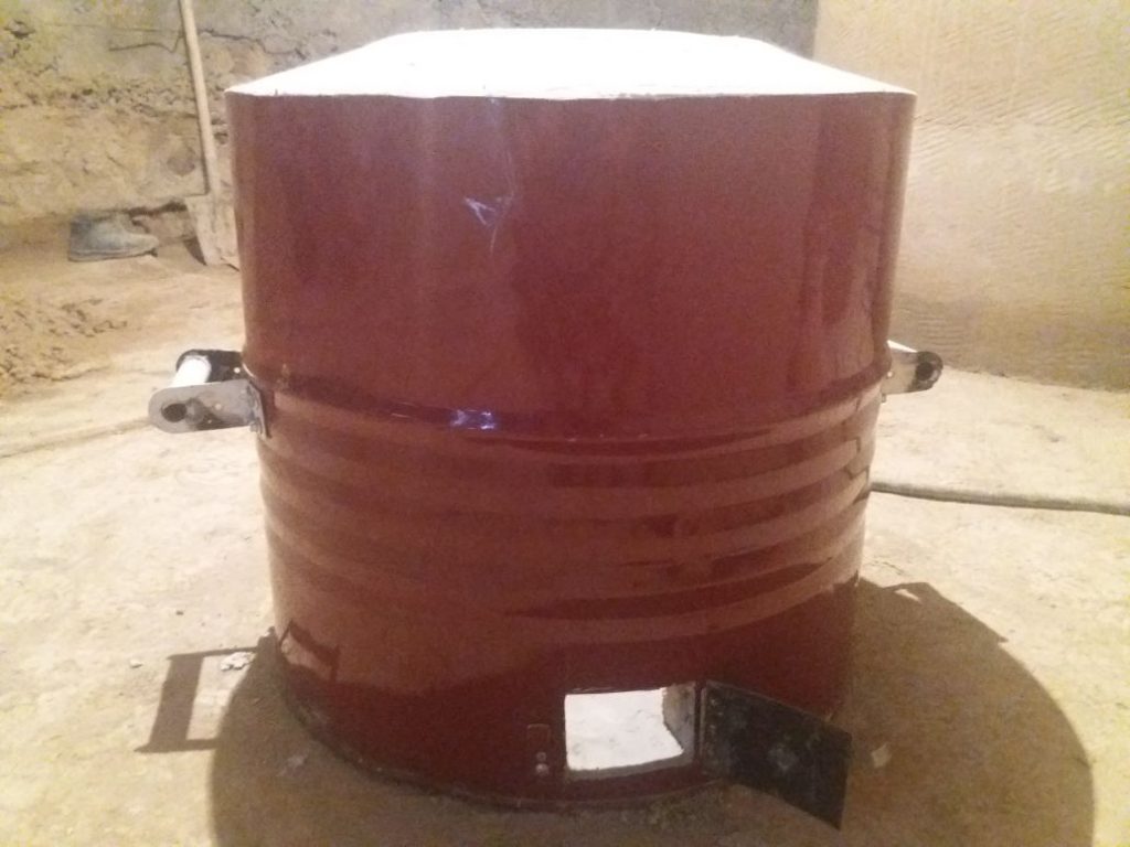 На сутки бочка заполняется водой, во время чего разводится эластичная глиняная смесь с песком и шерстью. По прошествии суток вода сливается, емкость просыхает, смазывается растительным маслом изнутри. Затем проходит смазка внутренних стен бочки наносится глиняная смесь, чем выше к горлышку, тем слой должен быть толще. В нижней части бочки делается отверстие для подвода воздуха.