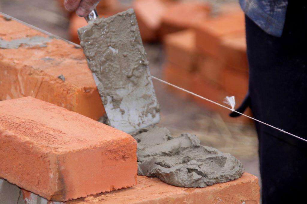 - Если температура воздуха высокая, а кирпич сухой, необходимо его смочить водой для улучшения адгезии между материалом и раствором.